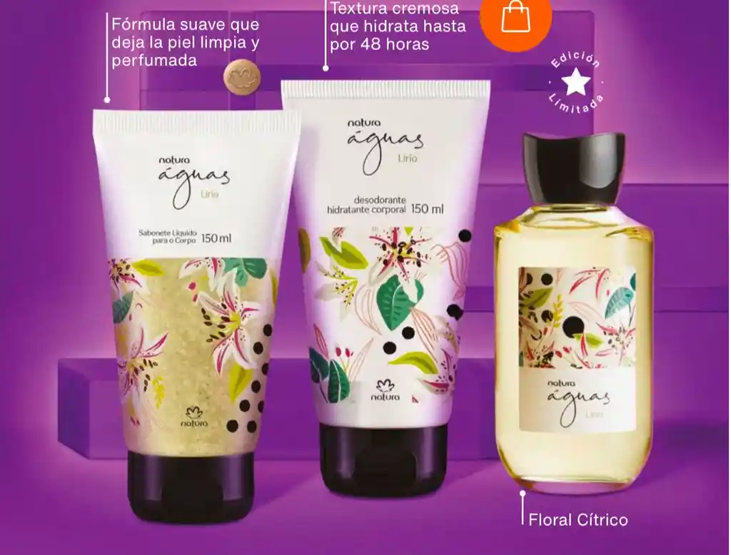 1 colonia de lirio 1 jabón líquido para el cuerpo lirio 1 desodorante hidratante corporal lirio.