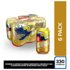 Águila Light 330 ml por 6 Und (Six pack). Es conocida por ser una cerveza muy refrescante, con un sabor suave y poco amargo, lo que la hace fácil de beber.