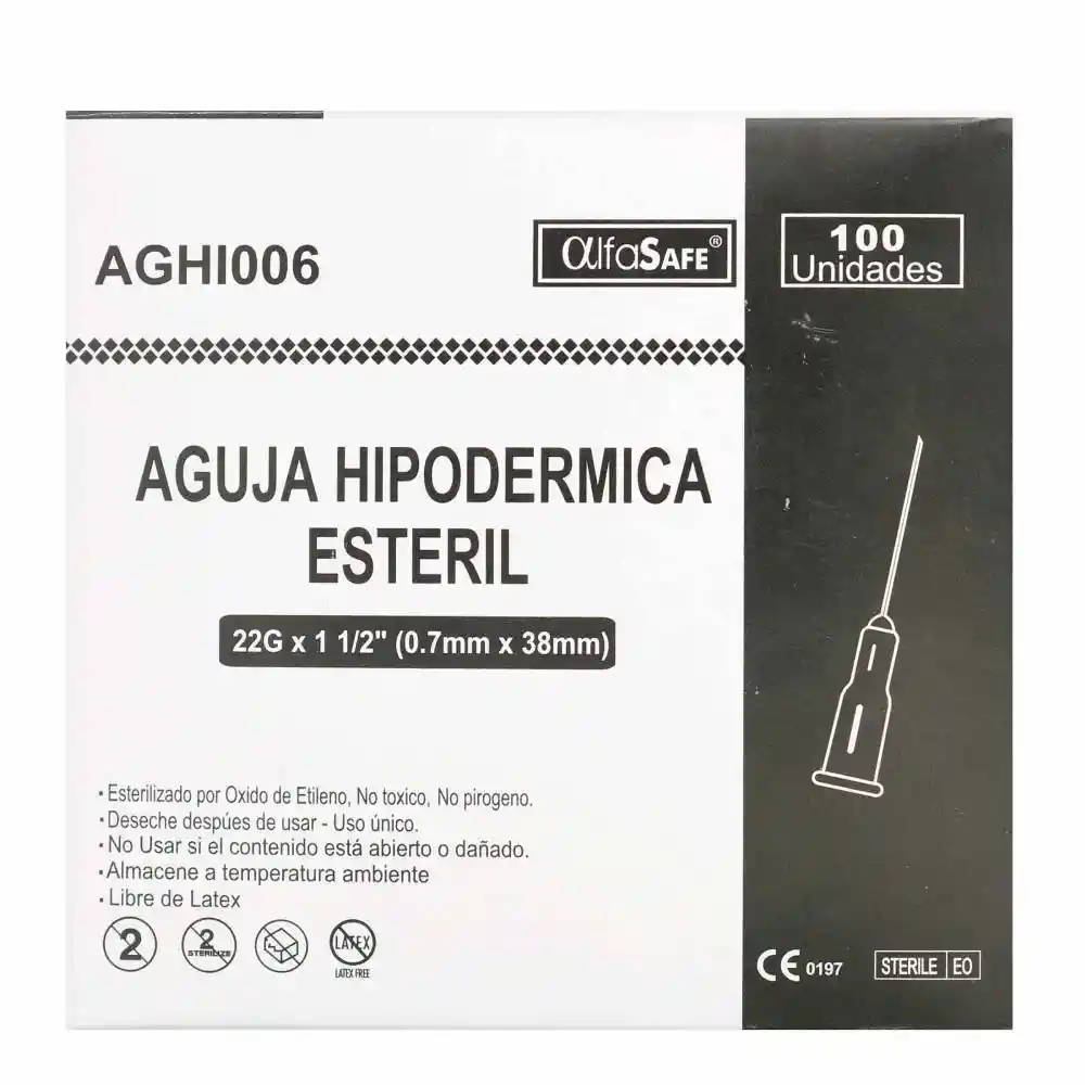 AGUJA HIPODERMIICA ESTERIL 22 G X 1 1/2 ALFASAFE