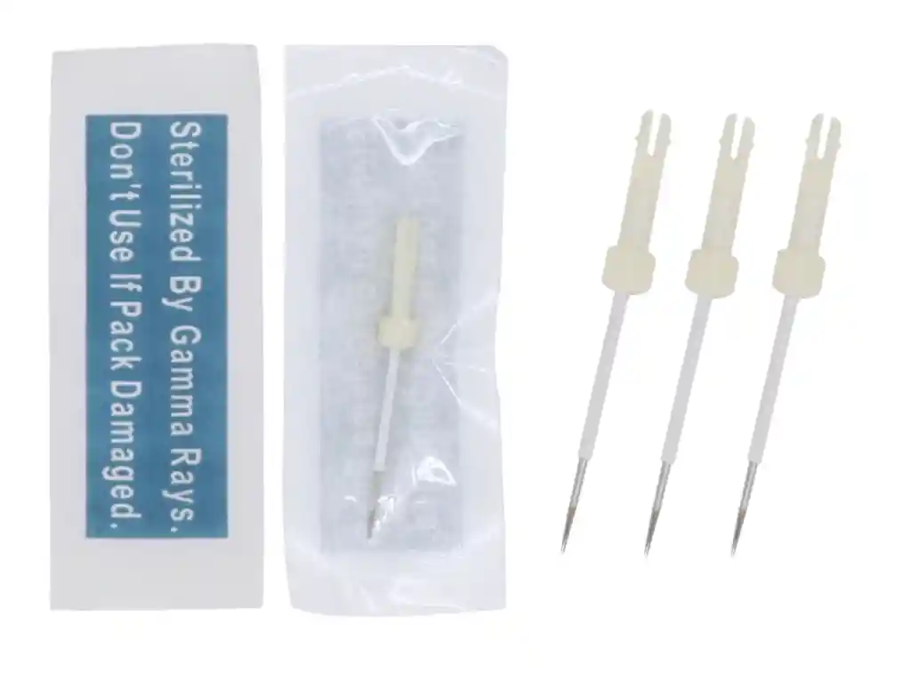 10 Agujas para Dermografo Biotuch Mosaic de 3 Puntas, 3R Características: Tipos de Agujas disponibles: 3R Aguja esterilizada de acero inoxidable Calidad superior y cumple con la cosmética internacional y los requisitos médicos. La esterilización certificada por Gamma Ray. Las boquillas vienen esterilizadas en paquetes individuales. Cumple con las pautas de esterilización del gobierno. Empaquetado individualmente. Estas agujas son hechas especialmente para el dermografo Biutouch Mosaic, para procedimientos cosméticos permanentes. Las configuraciones de agujas redondas son buenas para rellenar las cejas, delineadores de ojos gruesos y para delinear el área del labio. Otras agujas redondas en el mercado penetran a intervalos escalonados, pero con la serie BioTouch Accupoint, cada grupo de agujas está unido y recibe el 100% de la potencia de la máquina.