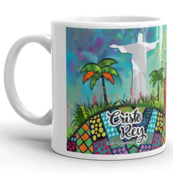 Taza en Cerámica de 11 Oz, Asa Color Blanco. Ilustración Original, Diseño 100% Colombiano. Colección Cali.