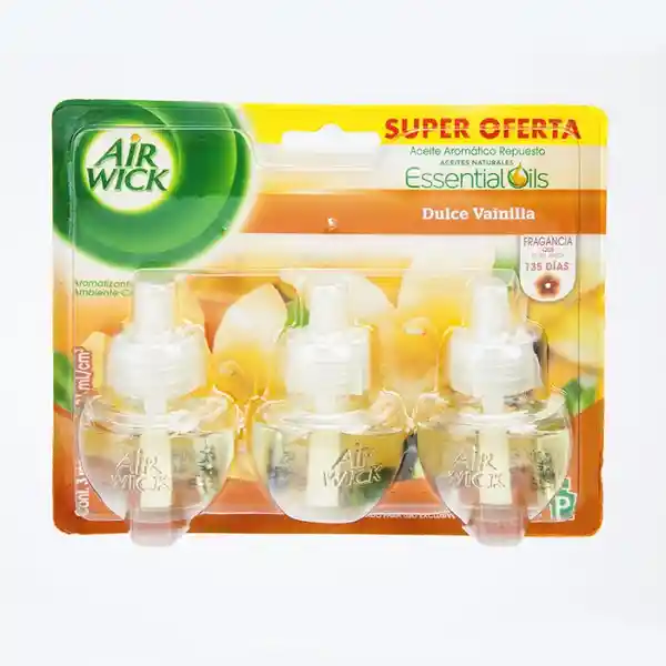 Set Con 3 Unidades de 21 mL c/u. Air Wick Eléctrico Fragancia Dulce Vainilla. Aceites Aromáticos Naturales. Fragancia Que Dura Hasta 135 Días. Sku- 205874