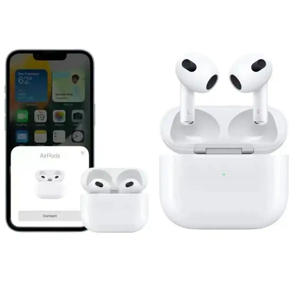 Airpods 3 generacion 2025 audifonos inalambricos multi funciones 1.1 COMPATIBLE CON IPHONE Y ANDROID Audio espacial. Tips: Usar PodsBattery Con Android para tener funciones similares al Iphone Modo ambiente Cancelacion de ruido passiva Sensor de movimiento Deteccion de oreja Configuracion avanzada de audio Recarga optimizada Version de Bluetooth 5.0 Opción de pausa automatica al quitarte los audífonos (Deteccion de oreja) Compatibles GPS y opción "Find me" o "Encontrar" Compatibles con Carga Inalámbrica Interfaz de vinculación Resistentes al agua Compatible con siri y/o asistencia por voz Compatibles con Android/ iOS/ Windows / Mac Sonido HQ envolvente/ HD Bass Botones tactiles Bateria de alta duracion (Hasta 6 Horas de reproducción, por carga) Hasta 20 horas de carga en total Conecion automatica con ventanas emergentes pop up PRODUCTO GENERICO Contenido: Audifonos 3ra generacion Caja Airpods 3 completa y nueva base de carga MagSafe Cable de carga tipo C a lightning 1 metro Manuales de uso