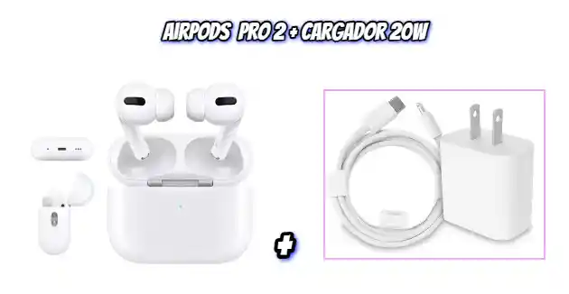 ¡Eleva tu experiencia auditiva al siguiente nivel con este combo excepcional! AirPods Pro 2 + Cargador 20W: La combinación perfecta para disfrutar de un sonido envolvente y de alta calidad con la libertad de la tecnología inalámbrica, y para cargar tus dispositivos de forma rápida y eficiente. AirPods Pro 2: Cancelación de ruido activa: Desconéctate del mundo exterior y sumérgete en tu música, podcasts o llamadas sin distracciones. Modo Transparencia: Mantente conectado a tu entorno sin necesidad de quitarte los auriculares. Sonido espacial con seguimiento dinámico de la cabeza: Experimenta un sonido tridimensional que te envuelve por completo. Ecualización adaptativa: La música se ajusta automáticamente a la forma de tus oídos para una experiencia auditiva personalizada. Control táctil intuitivo: Controla tu música, llamadas y el asistente de voz con facilidad. Ajuste cómodo y personalizado: Las almohadillas de silicona de diferentes tamaños te permiten disfrutar de un ajuste perfecto y cómodo. Batería de larga duración: Disfruta de horas de reproducción de audio sin interrupciones. Estuche de carga inalámbrico: Carga tus AirPods Pro 2 de forma rápida y sencilla. Cargador 20W: Carga rápida: Carga tus dispositivos compatibles con USB-C hasta un 50% más rápido que con un cargador de 5W. Compacto y portátil: Llévalo contigo a donde vayas gracias a su diseño compacto y ligero. Seguro y confiable: Cuenta con protección contra sobrecarga, sobrecalentamiento y cortocircuitos. Este combo es ideal para: Amantes de la música: Disfruta de tu música favorita con un sonido excepcional. Profesionales ocupados: Realiza llamadas con total claridad y mantente conectado con tu trabajo. Deportistas: Entrena con tus canciones favoritas sin que los cables te molesten. Viajeros: Disfruta de tus viajes con entretenimiento sin interrupciones. Cualquier persona que busca un sonido de alta calidad y la libertad de la tecnología inalámbrica. ¡No esperes más y adquiere este combo increíble hoy mismo!