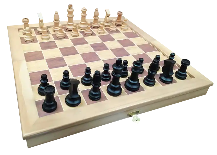Nuestro ajedrez con acabados de alta calidad esta fabricado en madera, compuesto por un total de 32 piezas. °8 peones blancos y 8 peones negros. Con una medida de 4.5 cm alto x 3 cm ancho. °2 caballos blancos y 2 caballos negros. Con una medida de 6 cm alto x 3 cm ancho. °2 alfiles blancos y 2 alfiles negros. Con una medida de 6.8 cm alto x 3 cm ancho. °2 torres blancas y 2 torres negras. Con una medida de 5 cm alto x 3 cm ancho. °1 reina blanca y 1 reina negra. Con una medida de 7.6 cm alto x 3.5 cm ancho. ° 1 rey blanco y 1 rey negro. Con una medida de 9 cm alto x 3.5 cm ancho. Incluye manual de uso. Contamos con certificado de Conformidad de Producto (SGS), el cual asegura que nuestros productos y su material de fabricación son 100% seguros para los niños. PRODUCTOS FABRICADOS 100% EN COLOMBIA, SOMOS FABRICANTES NACIONALES Edad recomendada: 6 años. Medidas abierto: 45x45x4 cm Medidas cerrado: 22.5x45x8 cm