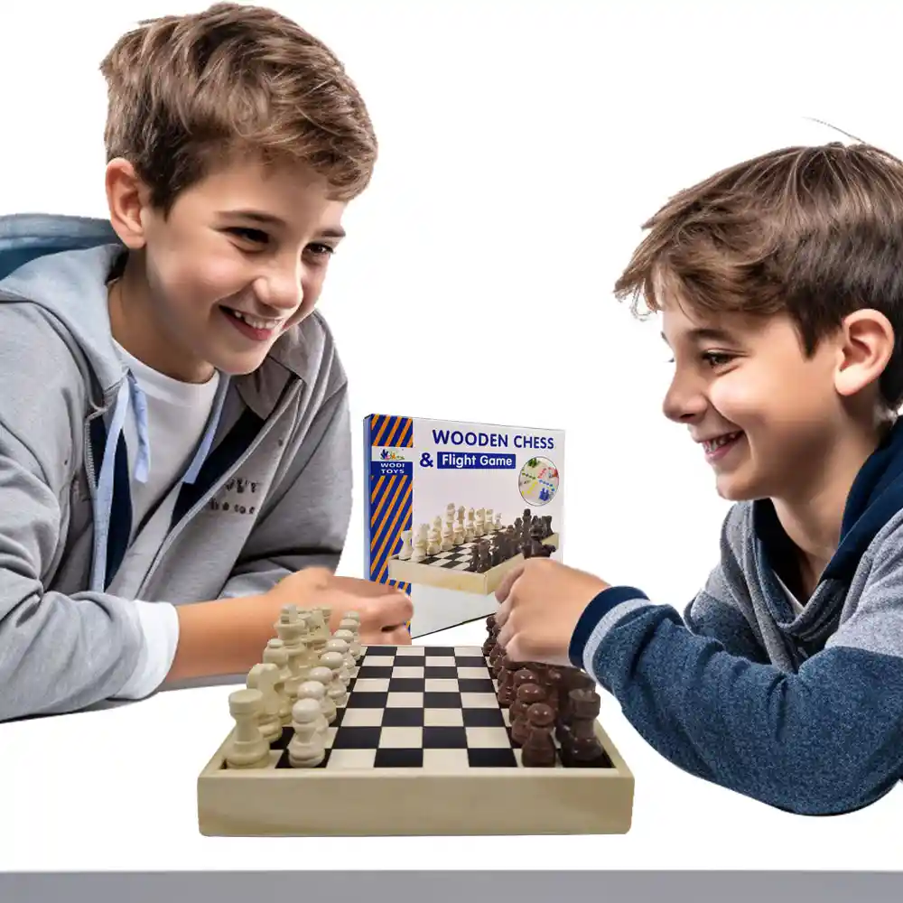 AJEDREZ IN PARQUES El ajedrez es un juego de estrategia en el que se enfrentan dos jugadores, cada uno de los cuales tiene 16 piezas de valores diversos que pueden mover, siguiendo ciertas reglas, sobre un tablero dividido en cuadrados blancos y negros. El objetivo final del juego consiste en “derrocar al rey” del oponente. Medida Tablero: 18 cm de Ancho x 17.5 cm de Largo x 2.5 cm de Alto. Material: MDF. Contenido: Tablero 2 en 1, 32 fichas de ajedrez, 16 fichas de parques y 2 dados. Los juguetes siempre han desempeñado un papel importante en la vida de los niños, siempre considerando los gustos y deseos de los más pequeños de la casa y no tan pequeños, procurando dar la mejor de las sorpresas y ganarse esa sonrisa incomparable que los llena de felicidad. Juguetes, cuentos, y cualquier producto orientado a la satisfacción y desarrollo de los niños. Diversión, entretenimiento y aprendizaje