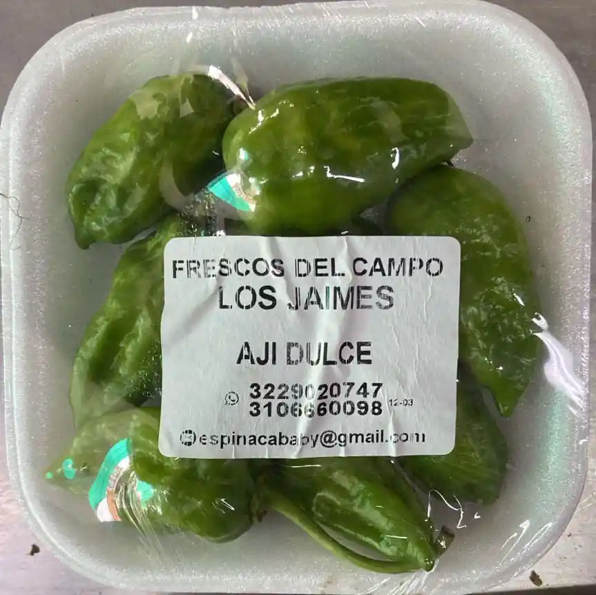 Ají dulce en bandeja: Peso aproximado 100 gramos.