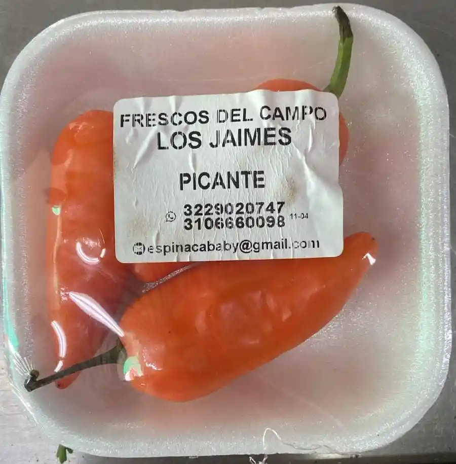 Ají picante en bandeja: Peso aproximado 100 gramos.