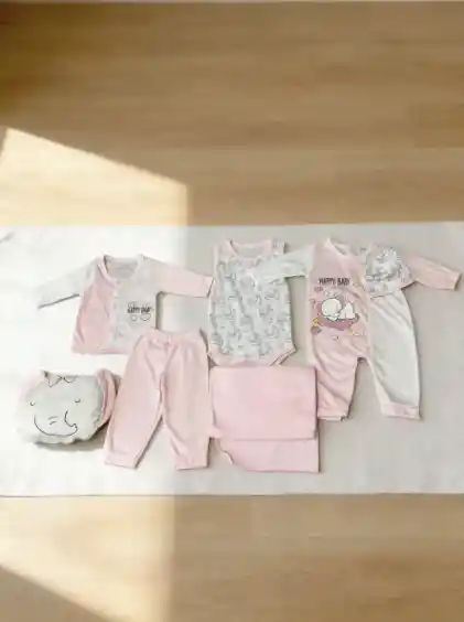 Ajuar Recien Nacido Ropa Bebé Niña 7 Piezas Elefante Rosado