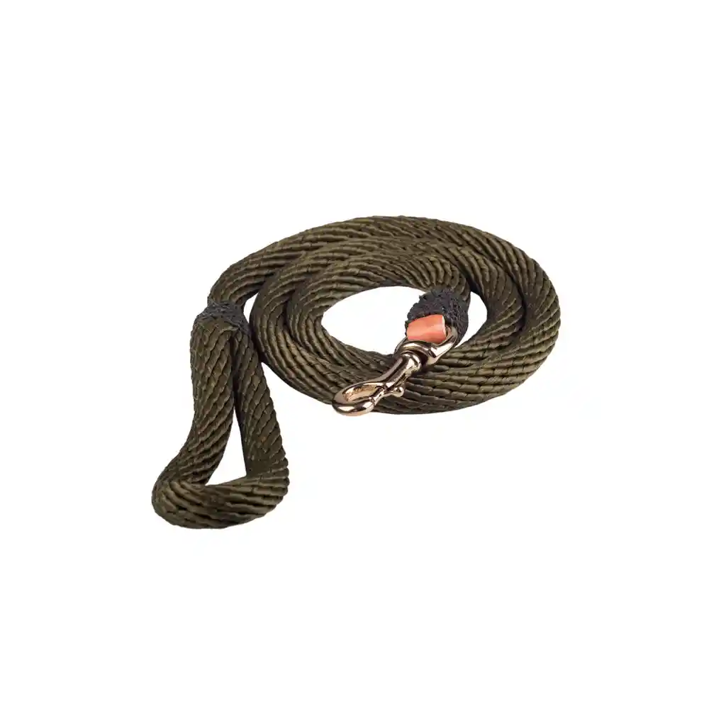 Material polipropileno de 5/8” nudos hechos a mano, herraje en acero en collares y mosquetón de ¾” en traílla. Al Torno