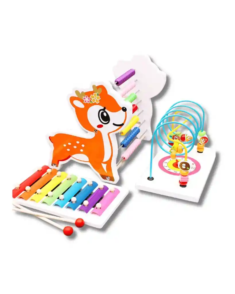 Este encantador juguete educativo en forma de venado combina diversión, aprendizaje y desarrollo motriz en una sola pieza. Con colores vibrantes y múltiples funciones, es ideal para estimular la curiosidad y habilidades de los más pequeños mientras juegan. ✨ Características destacadas: ✔ Diseño atractivo: Figura de venado naranja con detalles florales y puntos blancos que encantan a los niños. ✔ 3 actividades en 1: • Ábaco de cuentas con alambre azul para desarrollar la motricidad fina. • Xilófono multicolor para explorar sonidos y ritmo (incluye dos baquetas). • Reloj didáctico con manecillas móviles para aprender las horas. ✔ Material resistente y seguro: Fabricado en madera con acabados suaves y pintura no tóxica. ✔ Estimula el aprendizaje temprano: Ideal para desarrollar coordinación, reconocimiento de colores y noción del tiempo.