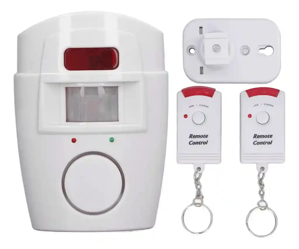 Alarma con sensor de movimiento exterior con control remoto antirrobo, luz de sonido, modo silencioso, alarma de entrada inalámbrica para casa y granja Características: modo dual: esta alarma con sensor de movimiento exterior admite un modo de alarma de 24 horas con luces y sonidos de 120 decibelios. El modo silencioso de 24 horas no molestará a tus vecinos. Alta seguridad: esta alarma de entrada inalámbrica admite hasta 30 detectores inalámbricos y 2 controles remotos, ahuyenta a los intrusos y protege tu granja y casa de la entrada de ladrones. Amplia aplicación: este sistema de alarma con sensor de movimiento es adecuado para casa, granja, granero, garaje, patio, villa, hoteles, fábricas, escuelas, huertos y otros lugares donde se necesite una alarma de seguridad. Control remoto: este sensor de alarma de entrada viene con 2 controles remotos que te permiten cambiar cómodamente de modo según tus necesidades, ahorrando tiempo y esfuerzo. Funciona con pilas: esta sirena con sensor de movimiento funciona con 4 pilas AA (pilas no incluidas), por lo que no tienes que preocuparte por cargarlas y cambiarlas con frecuencia. Especificación: tipo de artículo: sensor de movimiento exterior Material de alarma: ABS, tipo de batería de alarma de metal: AA Dry Batería (batería no incluida) Número de baterías de alarma: 4 pilas de control remoto Tipo de batería: batería de botón LR44 (batería incorporada incluida) Capacidad de la batería del mando a distancia: 160 mAh/pieza Número de baterías de control remoto : 6 lista de paquetes: 1