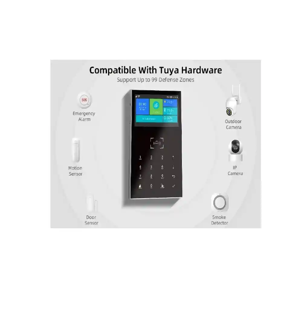 Aplicable A Wifi 2,4g Y Tarjeta De TeléFono MóVil GSM (2G), Aplicaciones Para Android Y IOS ------------------------------------------------------------------------------------ Sistema de alarma Wifi 2.4G Sistema de alarma antirrobo para el hogar Conexión inalámbrica GSM Tuya APP Monitorización remota Smart Home Tasa cero de falsos positivos ------------------------------------------------------------------------------------ Especificación: Color: Negro Material: ABS Size: 18cm*1.6cm*11.2cm/7.09in*0.63in*4.41in Alimentación: 5V Número de zonas de defensa: 99 zonas de defensa inalámbricas + 4 zonas de defensa con cable Modo de comunicación: WIFI+GSM (2G) Modo de alarma: teléfono, SMS, APP alarmas Distancia máxima inalámbrica(m):200(distancia abierta) Distancia de transmisión(m):200(distancia abierta) Distancia de uso del mando a distancia (m): 100 (distancia abierta) El decibelio del tono del altavoz externo:120dB Sirena con cable:Soporta 4 vías con cable Características: control remoto APP, intercomunicador remoto de voz, armado y desarmado temporizado, detección y protección contra incendios, función de armado y antihurto, alarma de emergencia, alarma de vinculación de accesorios, etc. ------------------------------------------------------------------------------------ 1.Alarma SOS One Touch: El sistema de seguridad para el hogar tiene 99 zonas inalámbricas, 4 zonas cableadas, se puede equipar con 10 tarjetas de identificación de radiofrecuencia, se puede equipar con 100 accesorios inalámbricos, viene con una alarma de alto decibelio, el sonido puede ser 115dB, alarma solar opcional de sonido y luz al aire libre, función de timbre incorporada, función de ayuda de emergencia, botón de timbre opcional, botón de emergencia. 2.Tecla táctil completa: La alarma adopta el sistema operativo integrado, ARM9 CPU de alto rendimiento de funcionamiento, 4,3 pulgadas HD pantalla táctil capacitiva, la pantalla más intuitiva operación más conveniente, toque el teclado a prueba de polvo, de dos vías función de intercomunicación de voz, fácil control para los ancianos y los niños, proporcionando la vida inteligente. 3.Servicio de comunicación múltiple: El sistema de seguridad para el hogar es compatible con el acceso a para Tuya Cloud, APP empuje, viene con la función de aviso de voz, soporta 10 idiomas nacionales comunes (chino, Inglés, alemán, ruso, español, polaco, italiano, francés, portugués, griego) 4.Visualización en tiempo real de la hora y la fecha: Este sistema de alarma para el hogar cambiará automáticamente en función del clima local, los cambios de tiempo, la temperatura ambiente y la humedad de un vistazo. 5.Alarma multifuncional: Esta alarma para el hogar tiene alarma de fallo de alimentación de red, alarma de escasez de batería de reserva, alarma de baja tensión de la batería del sensor, viene con función de alarma antisabotaje, armado de la puerta y la ventana se deja abierta advertencia, que puede eliminar individualmente la zona y personalizar el nombre de la zona. Si necesita utilizar un enlace de llamada, por favor, intente utilizar un enlace de tarjeta GSM (2G), o haber abierto el módulo de función de servicio VOLTE, la tasa de éxito de la conexión es mayor. ------------------------------------------------------------------------------------ El producto incluye: Anfitrión *1 Manual en inglés *1 Altavoz *1 Imán de puerta *1 Tarjeta de acceso*2 Mando a distancia por infrarrojos*2 Detector de infrarrojos *1 Soporte de infrarrojos *1 Cable USB*1 Adaptador de corriente *1 Paquete de tornillos *2 Resistencia *1 Caja de colores *1