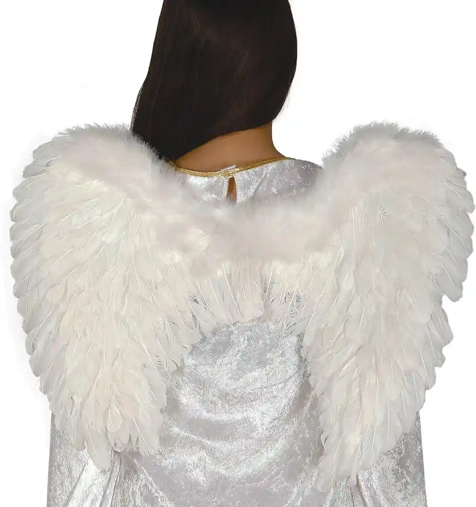 Alas con plumas en color blanco, ideal para usar como accesorio en cualquier disfraz de Ángel y hada. Accesorios Halloween.