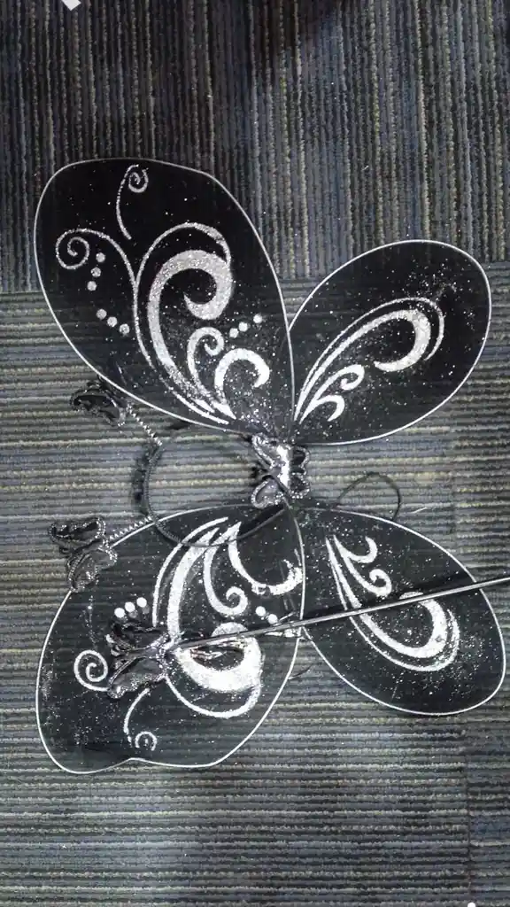 Alas De Ada Color Negro y Plateado Con Barita Con Mariposas.