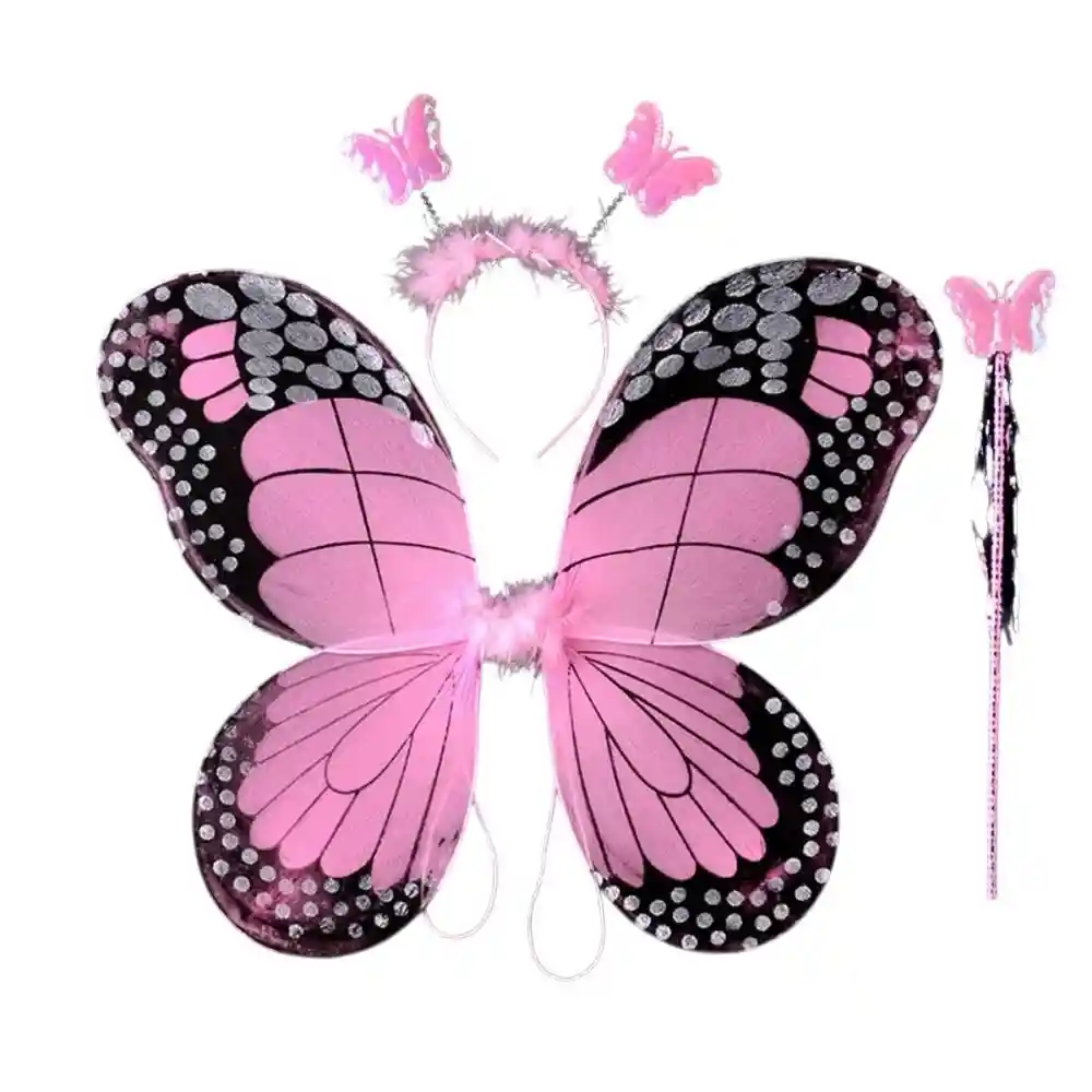 Disfraz de Mariposa Rosada en combo de alas, varita de mariposa y tiara de mariposa