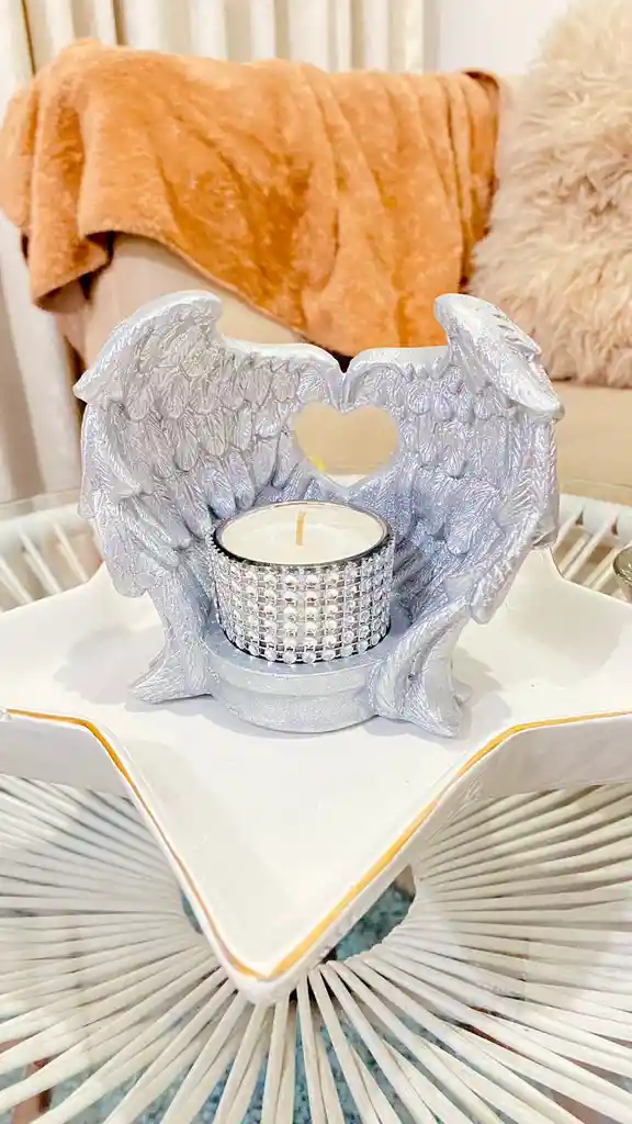 ALAS DE PROTECCIÒN 15 CM MATERIAL CERAMICA TONO PLEATEADO INCLUYE VELA