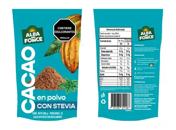 Alba Del Fonce Cacao en Polvo Con Stevia