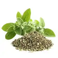 Hojas de albahaca secas, ideales para aderezos, salsas y preparaciones con un toque fresco y aromático.