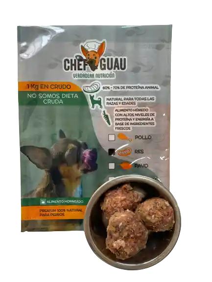 Deliciosas Albóndigas Especialmente Balanceadas Para tu Peludo a Base de Proteína Animal (Carne de Res Magra) Complementada Con Vegetales y Cereales y Horneada a Temperaturas Exactas Certificada Por Especialistas en Nutrición Para Mascotas.