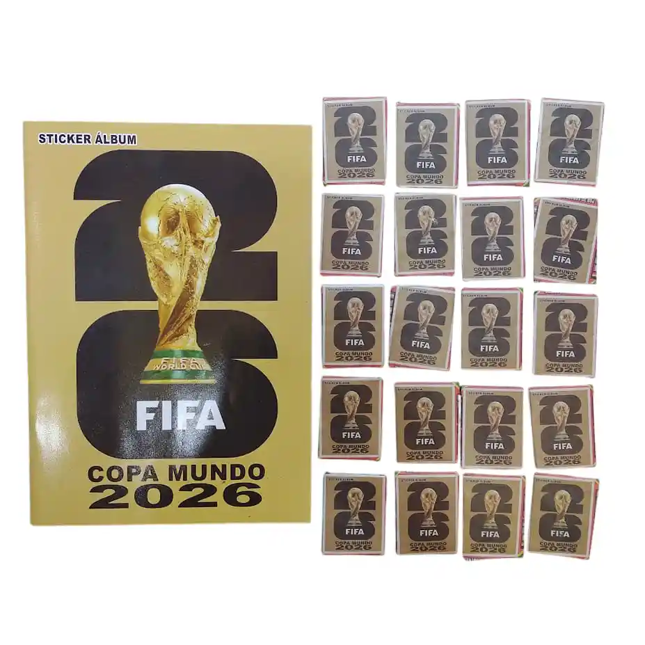 Álbum Futbol Copa Mundo 2026 Cromos + 20 Sobres de Laminas Stickers (Cada sobre contiene 3-4 laminas)