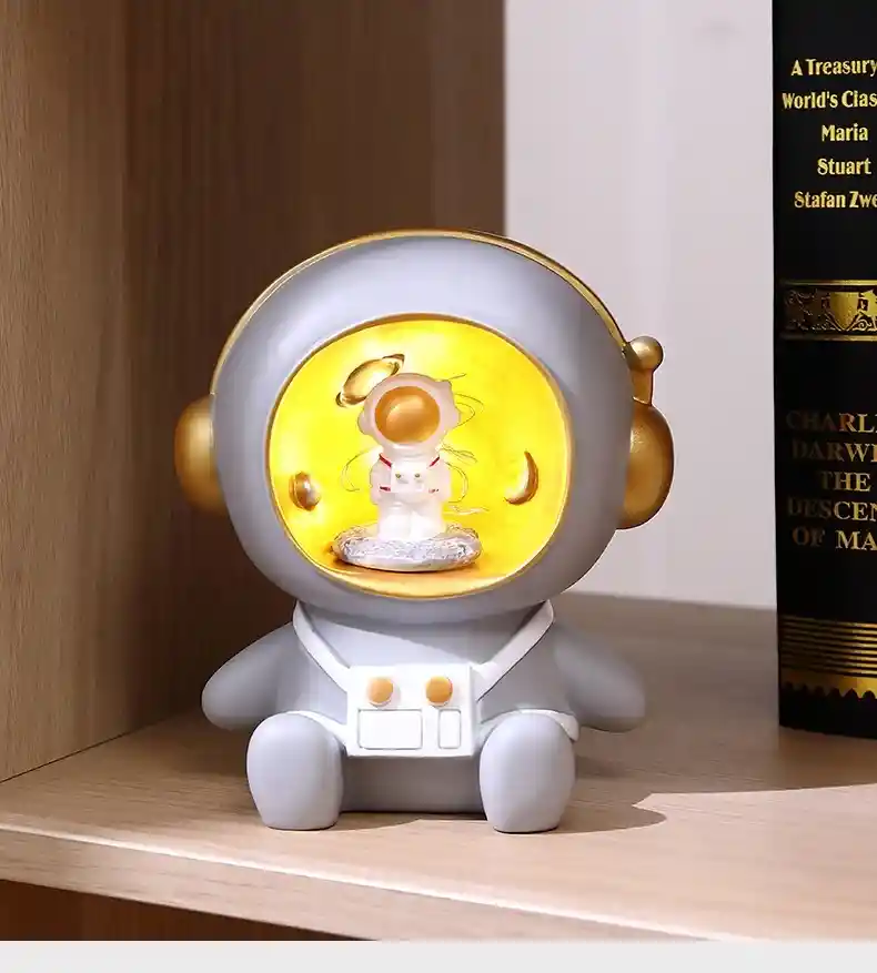Alcancía Astronauta Dormitorio Regalo para niños Luz nocturna Decoración Mini adorno modelo de estatua de astronauta + luz nocturna + alcancía, escultura de astronauta joyería artesanal No solo es una luz nocturna conveniente, sino también un juguete para niños. También hay una ranura para monedas en la parte posterior para guardar monedas o cambio, que es práctica y artística Adecuado para familias (sala de estar, sala de estudio, dormitorio), automóviles, gabinetes, tiendas, oficinas, hoteles, restaurantes, bares, etc. Especificación: Tamaño (largo x ancho x alto): 14x11x16cm Paquete incluido: 1 x alcancía astronauta
