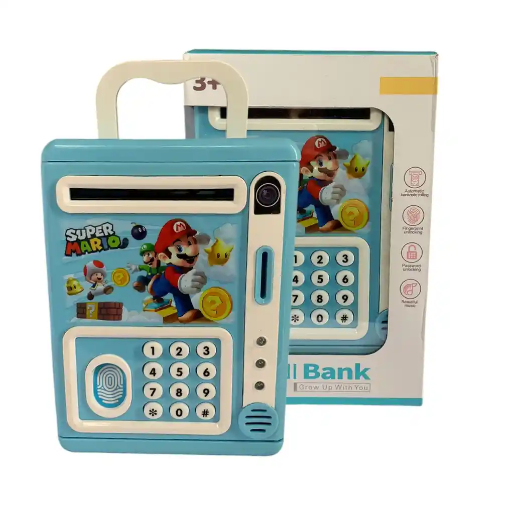 ¡¡BIENVENIDO A TONATEK!! 1. CARACTERÍSTICAS DE LA COMPRA: 1.1 Esta compra incluye: 1 Alcancía tipo caja fuerte para niños 1.2 Características del producto: Alcancía caja fuerte digital para niños con sistema de seguridad mediante huella y reconocimiento facial, ideal para ahorrar de forma divertida y segura. Cuenta con compartimento para billetes y monedas, apertura electrónica y diseño moderno tipo caja fuerte. Permite proteger el dinero con tecnología interactiva que motiva el hábito del ahorro. Es fácil de usar, liviana y práctica para el hogar. Funciona con baterías (no incluidas) y es perfecta como regalo educativo y entretenido.