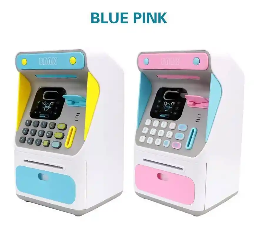 utilice este cajero automático verdaderamente personal para administrar sus fondos. utilice únicamente la tarjeta proporcionada y la contraseña personal de 4 dígitos para activar el cajero automático. la máquina acepta y reconoce cada moneda insertada, y luego acepta billetes sacándolos de la ranura en la parte frontal de la máquina. enseñe a los niños cómo ahorrar dinero y realizar un seguimiento de su progreso de ahorro! Características: *Reconocimiento facial 🙋🏻♀️ *Alarma incorporada en caso de robo🚨 *Diseño de pantalla LCD de reconocimiento facial👀 *Sonidos divertidos 🌈 *Diseño de tarjeta y contraseña🌸 *Funciona con 3 pilas 🔋 *Material: plástico + componentes eléctricos💫 *Tamaño: 16 * 14 * 26,5 CM💸 🚨Utilice únicamente la tarjeta proporcionada y la contraseña personal de 4 dígitos para activar el cajero automático🚨 Colores disponibles: Rosado 🌸 Azul💎 Incluye: Alcancía con reconocimiento facial💵 Manual de instrucciones 📋