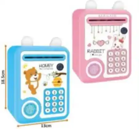 ¡Claro! Veo que has añadido un duodécimo producto: una Alcancía Electrónica con diseño de Animales (Oso y Conejo).Aquí tienes la descripción optimizada para esta segunda alcancía, que complementa muy bien la alcancía de cohete que ya describimos:Título Sugerido del ProductoAlcancía Electrónica Tipo Cajero Automático - Caja Fuerte con Contraseña y Ranura Automática (18.5cm x 13cm)Descripción General¡Enseña a tus hijos el valor del ahorro con esta divertida Alcancía Electrónica! Disponible en dos diseños adorables (Oso en azul y Conejo en rosa), esta caja fuerte es una excelente herramienta para que los niños guarden sus monedas y billetes.Funciona como un mini cajero automático con un teclado de acceso por contraseña y la capacidad de absorber los billetes automáticamente (función típica de estos modelos), haciendo que el ahorro sea interactivo y emocionante.Características PrincipalesDoble Diseño Temático:🐻 Modelo Azul (Oso): Decorado con un oso de dibujos animados y el texto "Honey Money".🐰 Modelo Rosa (Conejo): Decorado con un lindo conejo y el texto "Rabbit".Ranura Automática: Ranura frontal que facilita la inserción de billetes, los cuales son "tragados" por la máquina (función de absorción de billetes).Entrada de Monedas: Ranura superior para depósito de monedas.Seguridad por Contraseña: Cuenta con un teclado numérico simulado para establecer y desbloquear una clave personal, enseñando responsabilidad.Funciones Interactivas: Emite luces y sonidos (generalmente música o mensajes de voz) al depositar dinero o ingresar la clave.Especificaciones TécnicasCaracterísticaDetalleTipo de ProductoAlcancía Electrónica / Mini Caja FuerteDiseñoCaja con Dibujos Animados (Oso/Conejo)Medidas del ProductoAlto: 18.5 cm Ancho: 13.0 cmMaterialPlástico ABS de alta calidadMecanismoClave Numérica y Absorción de BilletesColoresAzul y RosaAlimentaciónRequiere baterías (No incluidas)Beneficios EducativosHábito del Ahorro: Convierte el ahorro en un juego diario y divertido.Secreto y Responsabilidad: La clave personal les enseña a ser responsables de sus pertenencias.Motricidad y Matemáticas: Práctica con el teclado numérico.Resumen de Productos con Descripción Creada (Total: 12):Set de DinosauriosTablet EducativaAlcancía Electrónica CoheteSet de 8 Autos de CarrerasModelo a Escala Range Rover (48 cm)Pistola Lanza Aviones y Dardos (2 en 1)Pistola de Agua Dinosaurio (29 cm)Tren Automático Coloca Dominós (21 cm)Set de Doctora Juguete (Rosa)Set de Muñecas y Coche Rosa (Bella Family)Set de 6 Pelotas SensorialesAlcancía Electrónica Oso/Conejo (18.5 cm)
