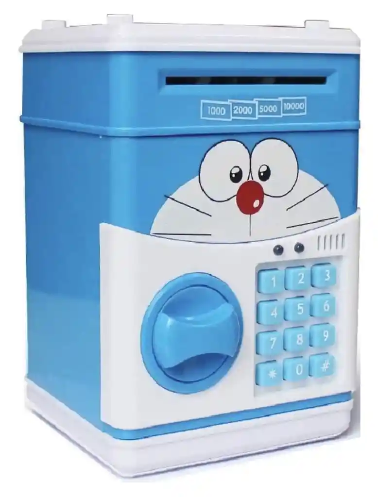 Hermosa Caja fuerte, coloca la clave a la caja fuerte y gira la perilla para abrir la caja, tiene SONIDOS y luces LED tanto como si la clave es correcta o si es incorrecta. Tiene un espacio para insertar billetes, cuando lo insertas hay un rodillo que hala el billete y también alumbra un LED. En la parte superior también cuenta con una ranura para insertar monedas. Desplazamiento automático de papel y detección de billetes Cuando el billete cerca de la caja de efectivo fluye, puede absorber automáticamente (pero no funciona si el papel es demasiado viejo o demasiado suave) puede almacenar dinero, monedas y otros artículos pequeños privados. La ranura de las monedas en la parte superior te permite utilizar la caja fuerte como hucha. Función de detección de billetes de luz púrpura. La contraseña predeterminada es 0000, puedes cambiar la contraseña a 4 dígitos. Si olvidas la contraseña, reinicia Quita las pilas, la contraseña vuelve al 0000. Alta capacidad de la caia de dinero Puede almacenar alrededor de 700 monedas o 300 billetes. Interesante y divertido, un articulo imprescindible para niños o regalos, te ayudará en gran medida a desarrollar un buen hábito de ahorrar dinero. De plástico banco de material Plástico de alta calidad, resistente y no se rompe fácilmente. Funciona con 3 pilas AA (pilas no incluidas)
