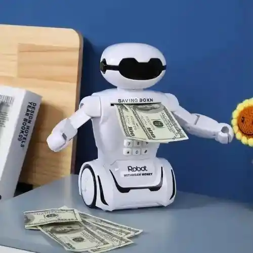 Alcancia Robot Lámpara de escritorio para niños, robot de música de voz inteligente, Banco de juguetes, la combinación perfecta de funciones. El regalo favorito del niño. Interesante y divertido, un artículo imprescindible para niños o regalos, le ayuda en gran medida a desarrollar un buen hábito de ahorrar dinero. Descripción del producto: Material: ABS + componentes electrónicos, plástico ABS ecológico, sin olor, antienvejecimiento, resistente y duradero, todos los adultos y niños pueden usarlo. (Largo x ancho x alto) 24x9x13cm Tamaño de la entrada de dinero: aproximadamente 9cm Características: luz led ocular, giro automático del dinero, 10 canciones, se puede cambiar la contraseña, guardar monedas, el robot se puede deslizar, lámpara de mesa, los brazos se pueden mover libremente. Operado por 3 baterías AA Recargables (Incluidas) + cable de carga USB * 1 (incluido), tamaño del embalaje 20,5*12,5*29cm Funciones del Robot: 1. Para encender la Lampara: mantén pulsada la tecla (#) para encender la lámpara de escritorio. 2. Abrir Compuerta: introduce la contraseña predeterminada 0000 para abrir la ranura para ahorrar dinero. 3 Cambiar Contraseña: en el estado abierto, mantenga pulsada la tecla (*), se le solicitará que ingrese nuevas contraseñas, luego presione la tecla # de nuevo, el sistema le solicitará que cambie la contraseña y suelte la tecla * . Puedes cerrar la puerta. 4. Estado cerrado: Mantenga pulsada la tecla # para encender el modo de luz nocturna, presione la tecla # para cambiar el modo de música En estado abierto: Presione la tecla # para cambiar entre el modo chino e inglés. 5. Carga USB: el tiempo de carga es de 150 minutos Paquete: 1 * cable de carga USB 1 * hucha de lámpara de mesa Robot 3* baterias Recargables 1* Manual