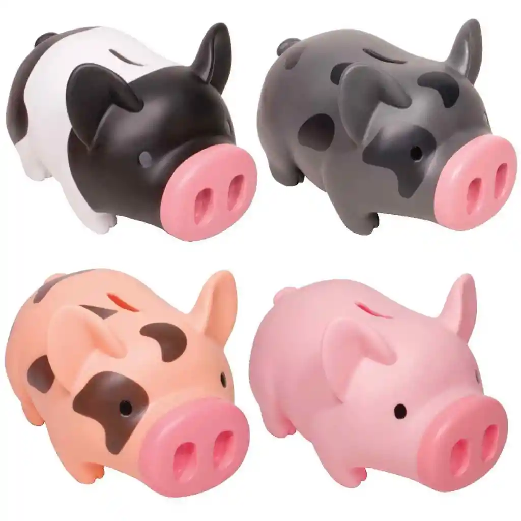 Este amigo lo ayudará a engordar sus ahorros. Material: PVC libre de ftalatos Medidas: 10.16 x 19.05 x 12 cm Se envia color aleatorio