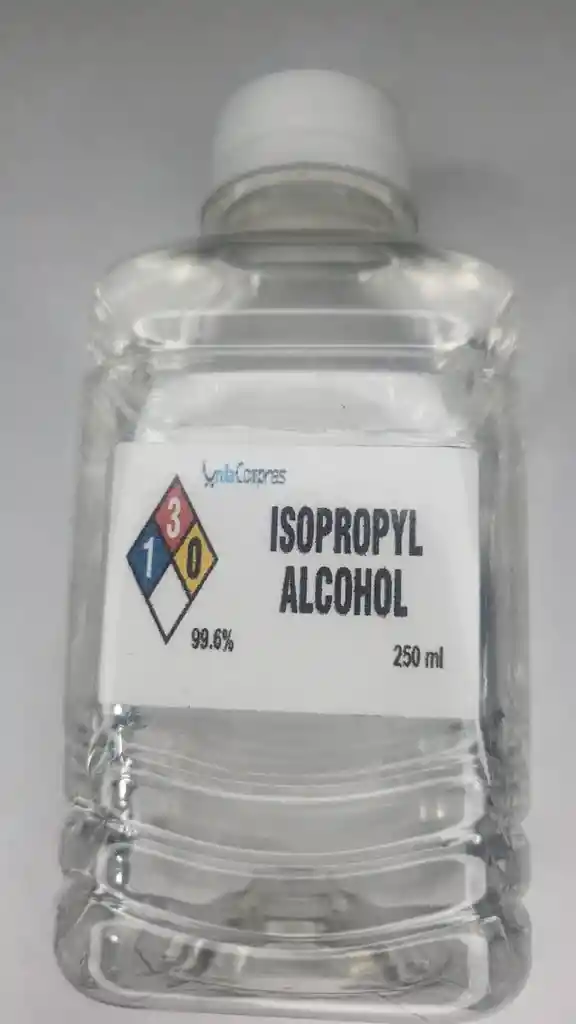 ALCOHOL ISOPROPILICO BOTELLA 250 ml Pureza y calidad en la limpieza de dispositivos electrónicos. Puro y sin aditivos, cumple la función de agente limpiador, desengrasante y desinfectante. Se caracteriza por su rápida evaporación. Para talleres de reparación de celulares e informática; CPU, GPU, ventiladores, pantallas, lentes, impresoras, elementos magnéticos, ópticos, teclados, monitores, mouse, etc Aplicar con el equipo apagado. Puede aplicar el alcohol isopropílico en un paño preferentemente de microfibra. Para acceder a los espacios de difícil acceso, (o para retirar restos de pasta térmica del IHS o residuos de flux), puede utilizar hisopos de algodón o un pequeño cepillo. Para limpiar ventiladores o cooler de pc, lo ideal es utilizar una brocha o pincel. Este producto es solo para uso industrial (bajo supervisión técnica). La emp