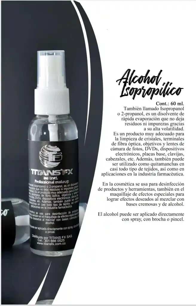 En la cosmética se usa para desinfección de productos y herramientas, también en el maquillaje de efectos especiales