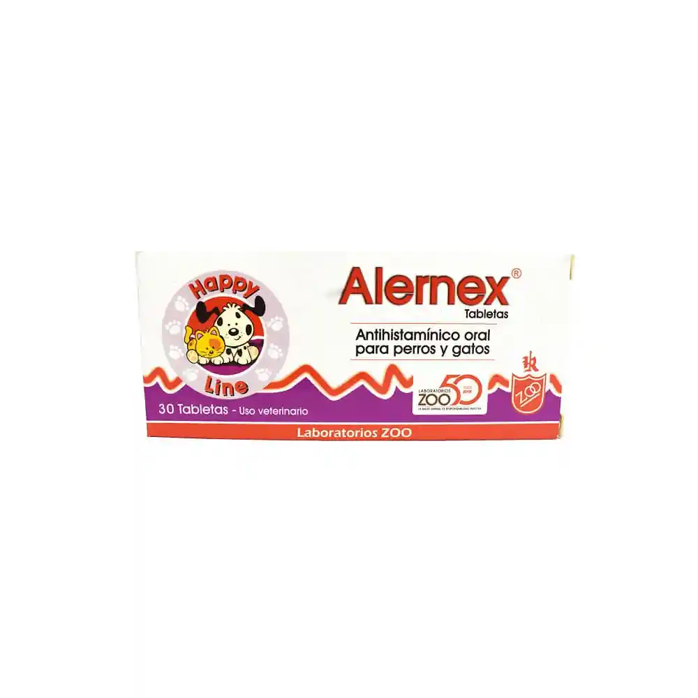Alivia las reacciones alérgicas o prurito simple de origen inespecífico con la estupenda fórmula de Alernex®, un medicamento indicado para perros y gatos con una acción antialérgica y antihistamínica que contribuye al tratamiento de reacciones alérgicas específicas como la dermatitis, urticaria, edema angioneurótico, otitis eccematosa aguda, picaduras de insectos, enfisema, quemaduras, tos y mareo. Además, sus cualidades antihistamínicas ayudan a despejar la nariz de tu mascota recuperando su apetito.