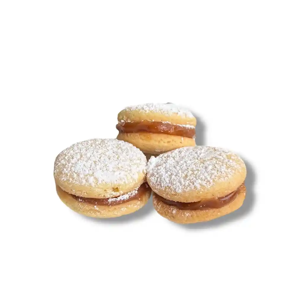 Paquete de 3 alfajores artesanales, elaborados con dos capas de suave galleta y un generoso relleno de cremoso arequipe, cubierto con azúcar glas para un toque irresistible.