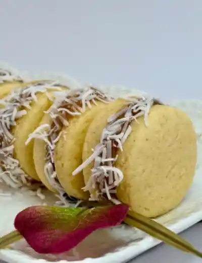 Postre de alfajores con relleno de dulce de leche y finalizado con coco y azúcar pulverizada por 4 unidades.