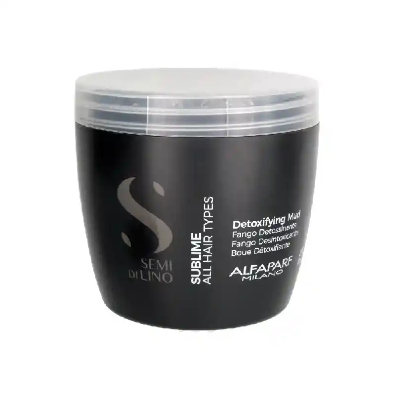 Alfaparf Semi Di Lino Sublime All Hair Types Mascarilla Desintoxicante *500mL El nuevo producto de Alfaparf Milano, Semi Di Lino Sublime Detoxifying Mud, es un lodo desintoxicante que elimina las impurezas en el cabello y el cuero cabelludo, dejándolo más limpio, más sano y más bonito. El estrés diario y la contaminación hacen que tu cabello genere residuos e impurezas, por ellos Alfaparf Milano ha creado este producto con efecto detox que deja como resultado un cabello completamente limpio, simplemente perfecto.