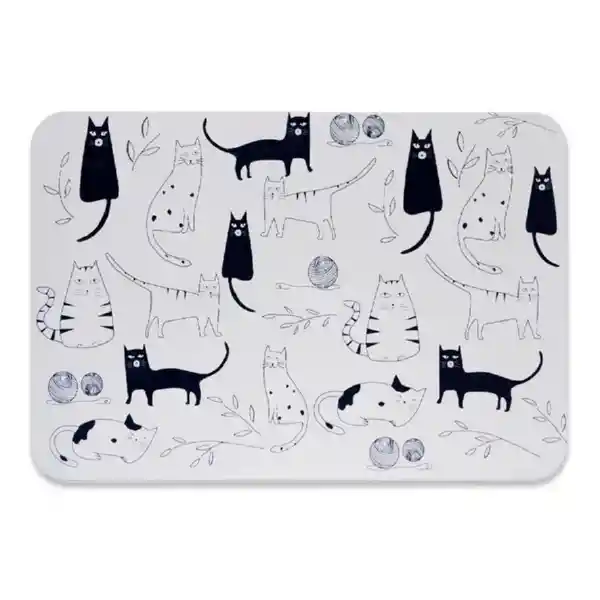 Alfombra Placa Baño Cats: Esta placa de baño seca tus pies de manera inmediata y también ayuda a combatir el moho y los ácaros. La placa de baño absorbe rápidamente el agua para disipar la humedad en un simple proceso de respiración. Anti bacteriana - Anti humedad - Antiséptica. - Medidas: 60 cm x 39 cm x 3 cm Peso:1,2kg. - Material: Diatomita