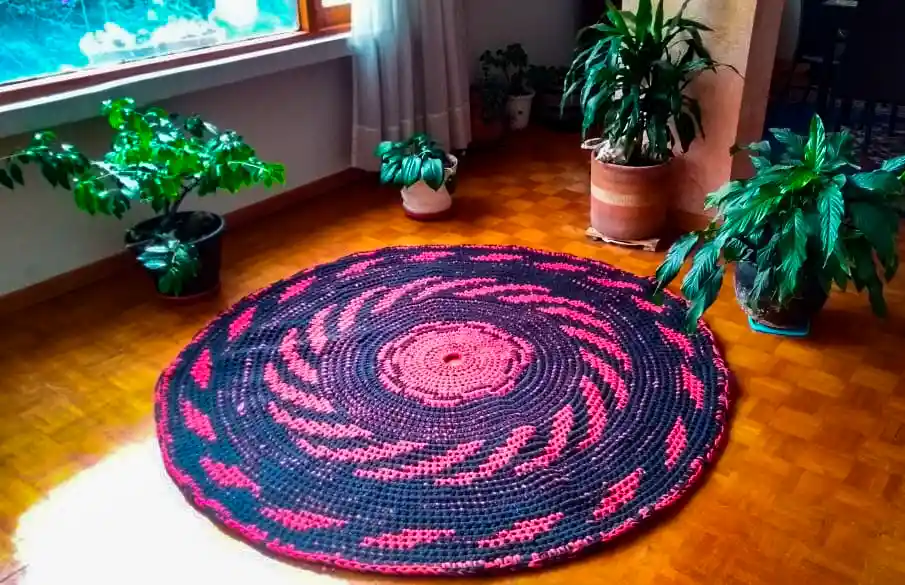 Dale un estilo único a tu hogar con Espectacular Alfombra tejida A mano de 1,70mts de diámetro, un solo diseño por producto no encontrarás otro igual