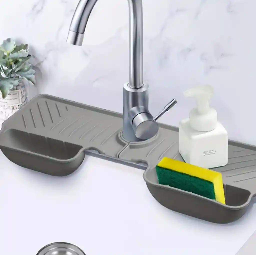 Alfombrilla de drenaje multifuncional para fregadero de cocina antideslizante y resistente con dos bolsas de almacenamiento, alfombra impermeable para baño.