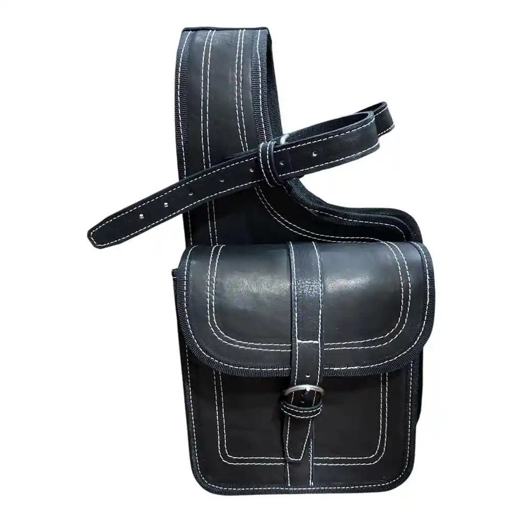 Nuestras alforjas de cuero son el accesorio perfecto para tus aventuras a caballo. Fabricadas con cuero muy resistente, ofrecen un amplio espacio de almacenamiento para todo lo que necesitas en tus recorridos. Las costuras dobles en hilo blanco no solo son un detalle estético, sino que refuerzan la estructura para una mayor durabilidad. El cierre con hebilla asegura el contenido, mientras que las correas ajustables garantizan un ajuste perfecto a la silla de montar. Una combinación ideal de tradición, funcionalidad y estilo. Alforjas hechas en cuero medianas, chapeteadas en el borde con lona, herraje en acero inoxidable. Medidas de largo 25 cm Medida de ancho 21.5cm