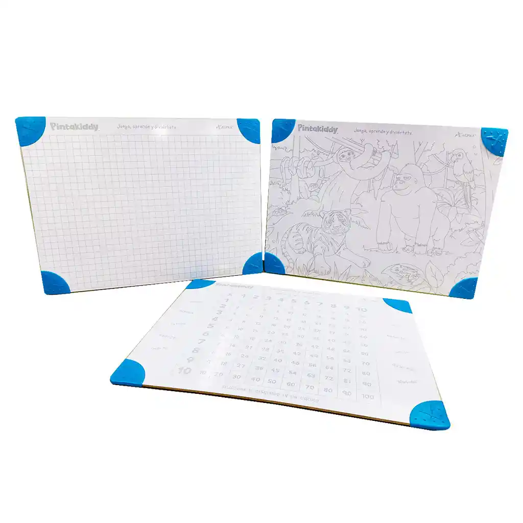 Set X 3 Tableros Acrílicos Estampados 40 X 30 Cm JUEGO TABLAS DE MULTIPLICAR -Excelente herramienta para aprender la tablas. -Ideal para enseñar los números, para colores. -Uso para manualidades. -Marco flexible apropiado para uso infantil. -Ligero y portátil gracias a su tamaño exacto. -Esquinas redondeadas de seguridad de goma. -Ideal para pre-escolar, primeros de primaria y hogares. CUIDADOS: Limpia con franela ligeramente húmeda No talles con fibra tablero No uses marcadores permanentes No uses cinta adhesiva Cambia tu borrador cuando se sature de tinta. ¡Dibuja, colorea, practica operaciones utiliza plastilina y más!