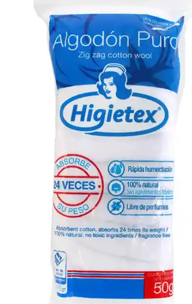 ALGODON PURO ZIG ZAG 50 G HIGIETEX