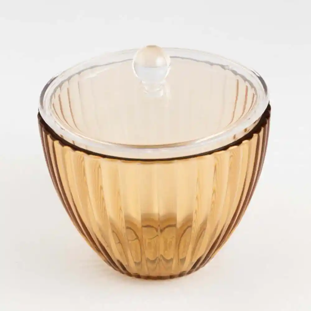 Algodonera de 12 cm x 12 cm, color ocre, material plástico, diseño tipo cristal, ideal para mantener los algodones limpios y organizados.