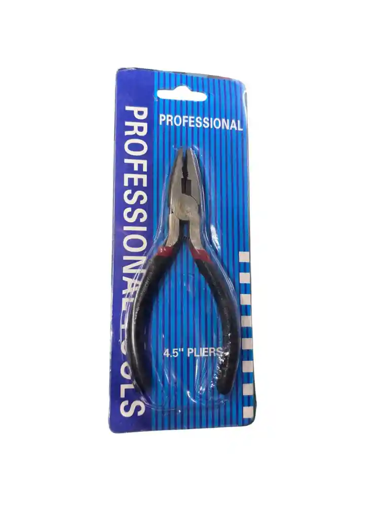 🔧 Alicate Ferretería Professional Tools 4.5" Alicate compacto y resistente, diseñado para trabajos de ferretería, bricolaje, reparaciones eléctricas y mecánicas. Su tamaño de 4.5 pulgadas 📏 lo hace práctico y fácil de manipular en tareas de precisión. ✨ Características principales: 📏 Medida: 4.5" (11,5 cm aprox.). 🛠️ Elaborado en acero de alta calidad, resistente al desgaste. 🤲 Mango ergonómico y antideslizante, cómodo para largas jornadas. 🔧 Ideal para corte, ajuste y sujeción de piezas pequeñas. ✅ Marca Professional Tools, garantía de calidad y durabilidad. 📦 Se envía según disponibilidad de la tienda.
