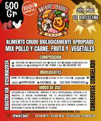 ALIMENO CRUDO BIOLOGICAMENTE APROBADO DE POLLO, VISERAS, FRUTAS Y VEGETALES 30% MAS PROTEINA