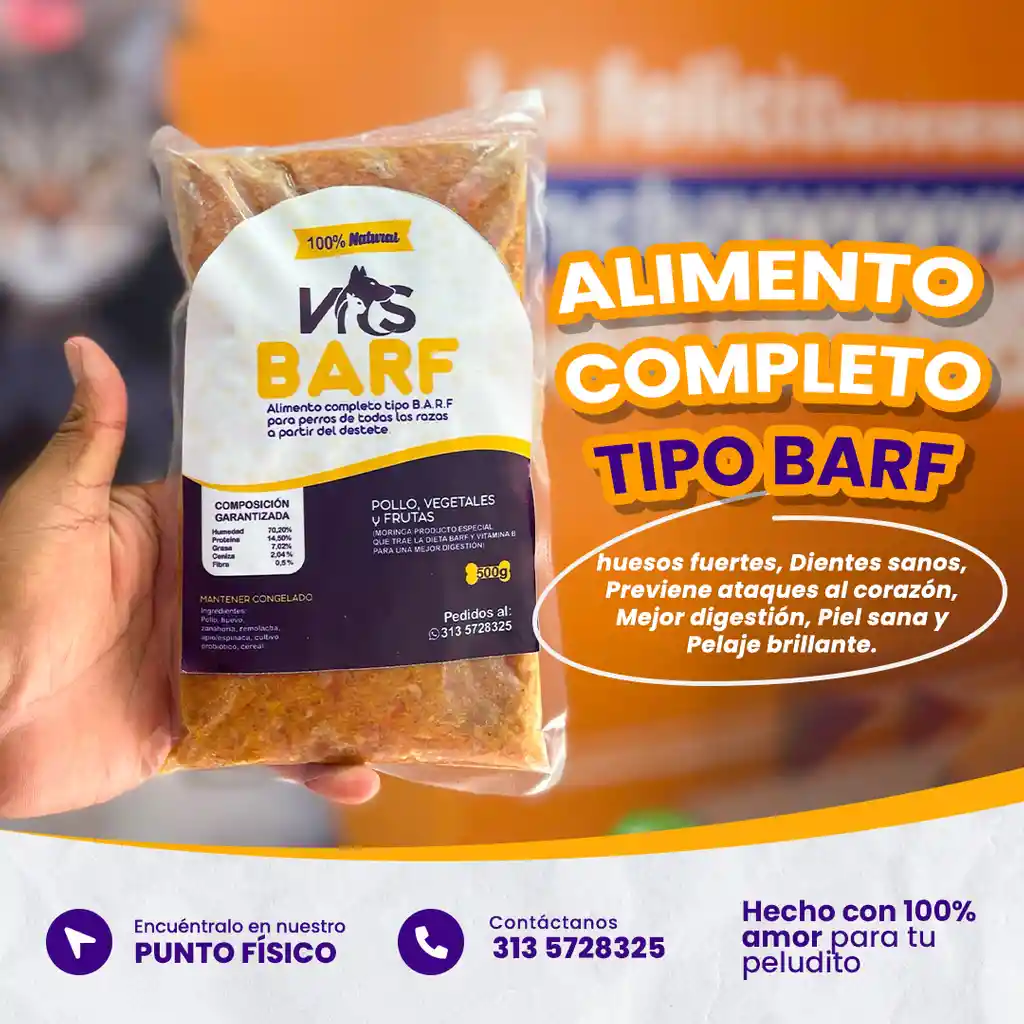 AÑADE AÑOS DE SALUD Y FELICIDA A TU MASCOTA🥬🍗🐶 alimento barf original idóneo para todas las razas y tamaño. Sus beneficios: huesos fuertes, Dientes sanos, Previene ataques al corazón, Mejor digestión, Piel sana y Pelaje brillante.