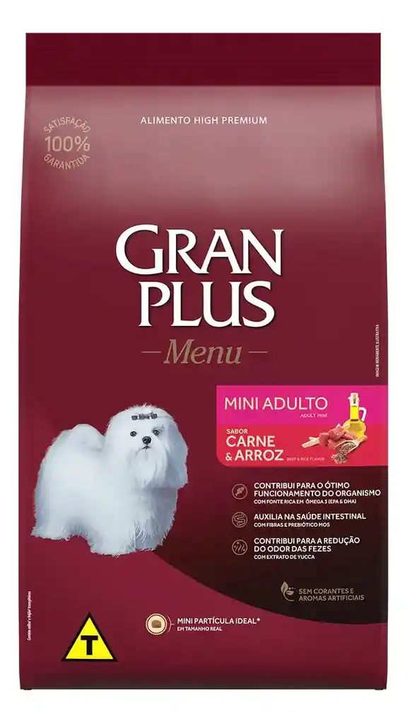 Descripción del producto GRANPLUS es una línea completa de Alimentos High Premium. Su fórmula exclusiva fue especialmente desarrollada para atender a los paladares más exigentes y ayudar a mantener la salud de su perro. Hecho con ingredientes nobles, es cocido al vapor y no contiene colorantes ni aromas artificiales. - SIN COLORANTES NI AROMAS ARTIFICIALES - CONTRIBUYE AL ÓPTIMO FUNCIONAMIENTO DEL ORGANISMO: con fuente rica en omega 3 (EPA & DHA) - AUXILIA EN LA SALUD INTESTINAL: con fibras y prebiótico MOS - FAVORECE ARTICULACIONES FUERTES: con glucosamina y condroitina