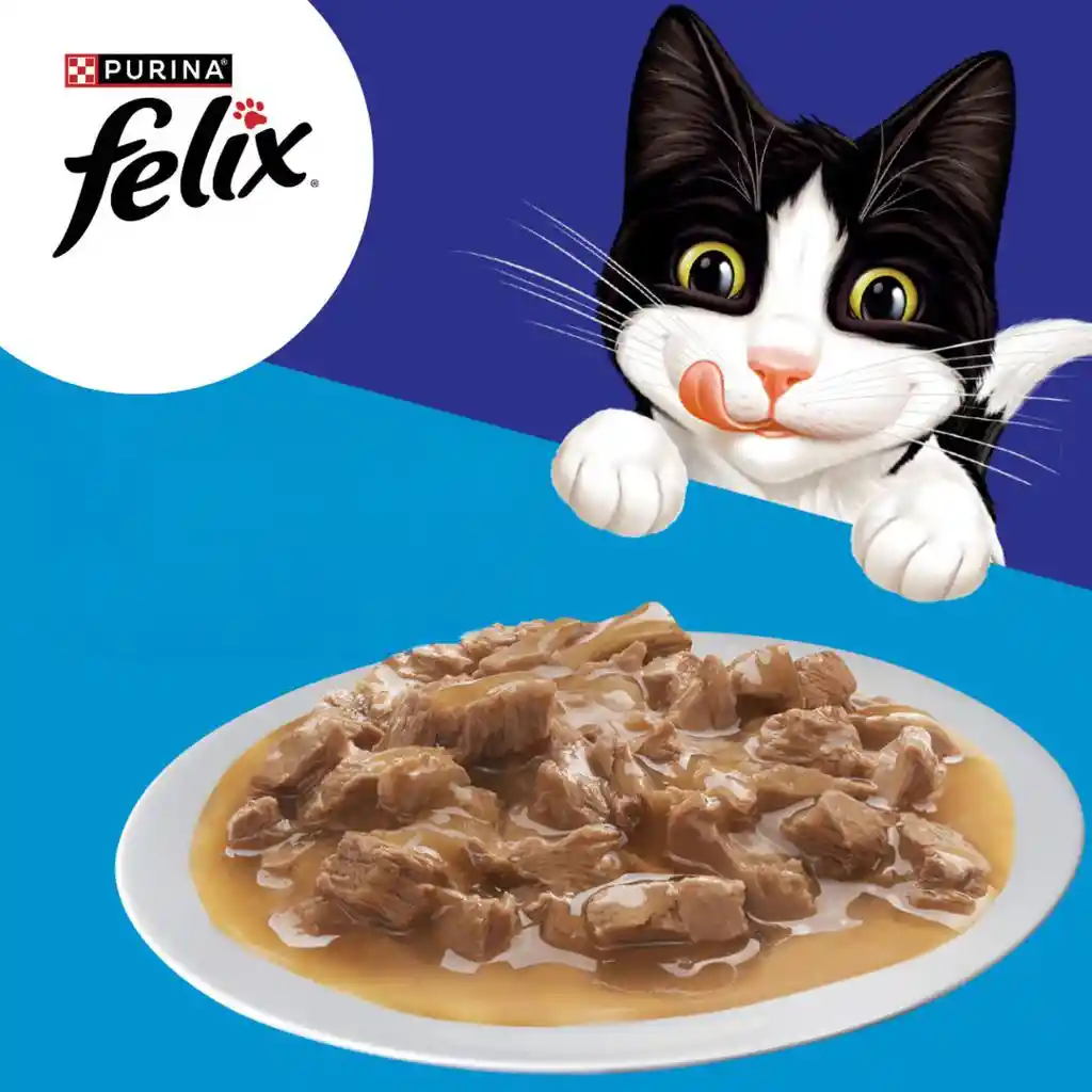 La comida húmeda Felix se caracteriza por su textura suave y jugosa, que es fácilmente aceptada por los gatos. Los sabores surtidos permiten a tu gato disfrutar de una variedad de comidas para evitar la monotonía en la dieta de tu gato y mejorar su apetito. La combinación de fibras naturales y una alta digestibilidad de los ingredientes asegura que tu gato tenga un sistema digestivo eficiente y saludable.